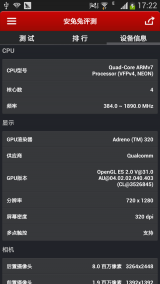 | CPU | 1.9GHz 高通 骁龙Snapdragon APQ8064 |