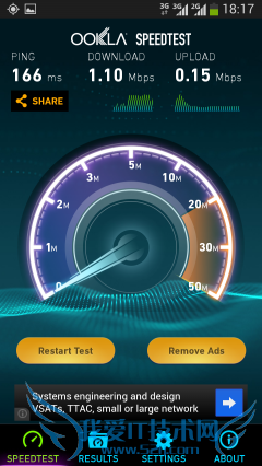 ▲Speedtest软件测试3G网速
