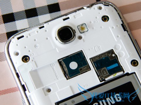 机身背部上方搭载一颗800万像素BSI后置摄像头,右侧配备LED闪光灯,同时也能看到醒目的SAMSUNG LOGO。扬声器则设计在了机身背部的左下方,它的左侧则是SPen插槽,整个背部布局简洁。