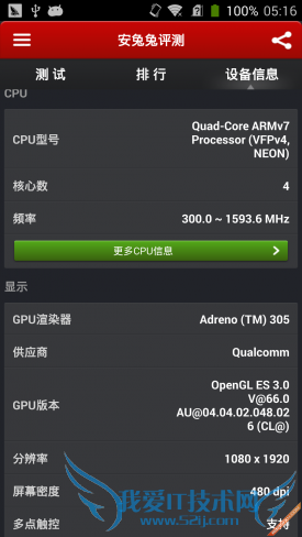 中兴星星1号搭载一颗高通骁龙MSM8928四核处理器,最高主频为1.6GHz,并辅以2GB RAM+16GB ROM,硬件配置较为主流。这枚CPU主要搭载在中低端4G手机中,采用了Adreno 305的显示核心,可能大家对于这款芯片还比较陌生,性能如何,通过跑分测试看看实际效果。