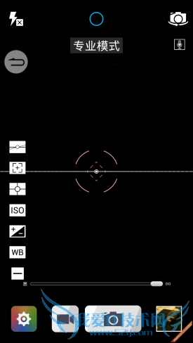 而专业模式可看到拍摄界面顶部中间位置的圆圈为变成蓝色,同时它的侧面出现有一排调节选项,可以实现独立测光、独立对焦功能,这样的自定义功能让拍照高手可以尽情施展功力,让他们可以随心所欲拍摄。