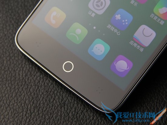 正面额头部分为手机听筒、800万像素前置摄像头以及传感器群,设计十分简单,同时在正面下巴部分中间为一个圆形Home键,同时隐藏在黑色面板下方的还有左侧的返回键以及右侧的多功能任务键。不过由于这两枚触控按键的背光灯并不是常亮,所以说初次上手的朋友需要注意。