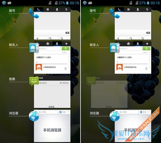 任务管理:长按主页按键即可开启任务管理界面,在这里界面采用了卡片式设计,可以很直观的看出系统后台运行的程序界面。点击卡片直接切换该应用,向上滑动则快速删除该后台程序。