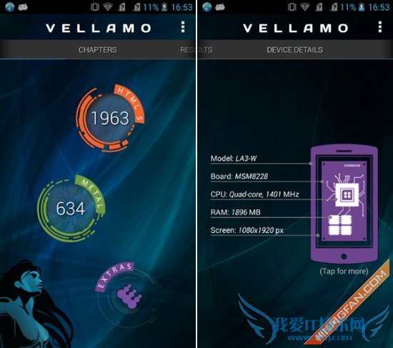 小辣椒3S Vellamo成绩HTML5为1963分,METAL为634分