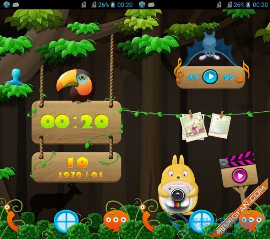 场景桌面:小辣椒3S除了拥有普通的系统桌面外,还支持场景桌面,只需用双指在屏幕上由上向下滑动,即可进入到场景桌面,在这个桌面下,应用程序都采用了场景化展示,非常的可爱。