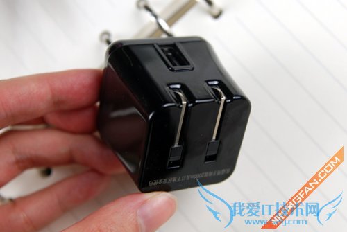 随机配件并不多,只有数据线、电源适配器,并没有配送耳机。折叠式电源适配器可以节省空间。