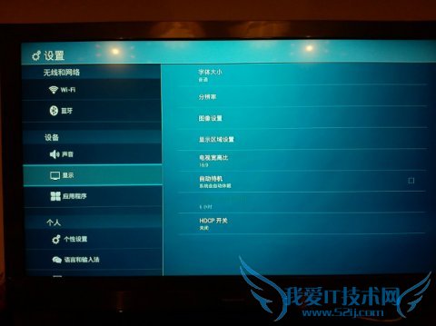 另外设置中会有一目了然的设置信息,WIFI、蓝牙、声音、显示等自定义功能,蓝牙功能不仅是提供遥控器使用,还可以连接其他蓝牙设备,如蓝牙鼠标、键盘等可控制的设备。而显示可以进行对画面的设置,分分辨率、电视宽高比以及其他等自定义功能。