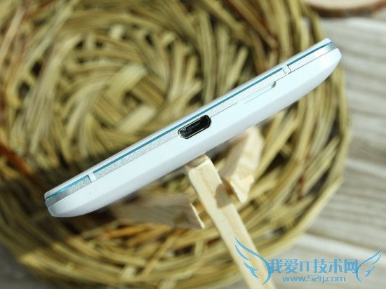 机身顶部仅有一个3.5mm耳机接口,底部为micro USB接口、打开后盖凹槽。