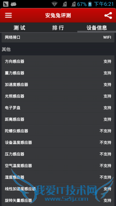 安兔兔评测AnTuTu Benchmark是一个专门给Android系统的手机、平板电脑硬件跑分的软件,它能一键运行完整测试项目,通过内存性能、CPU整数性能、CPU浮点性能、2D、3D绘图性能、数据库I/O、SD卡读、写速度等多项性能测试,并对手机的整体和单项硬件性能做出评分,同时上传分数并查看该设备在世界的排名。