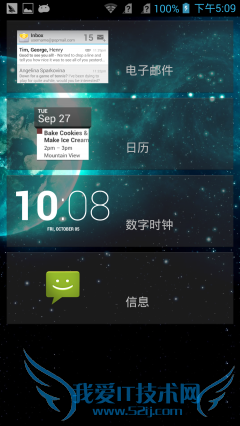 小辣椒3采用了圆形解锁界面,往右侧滑为解锁。另外还可以在锁屏内添加快速启动程序插件,提高了使用效率。