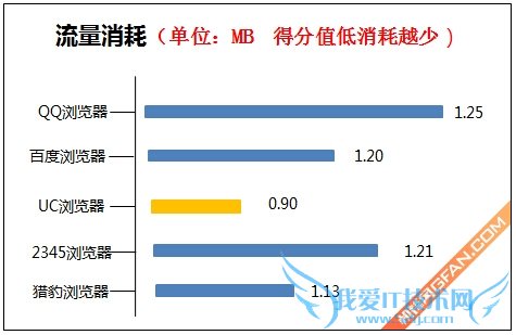 流量监测即通过“流量监测”应用来对浏览器进行流量监控。在测试前将清空流量记录和浏览器中的所有缓存数据,从零开始以确保记录的准确性。同时,我们选择的测试网址依然是常用测试载体优酷手机版页面。数值越小,则说明该浏览器对于流量消耗更小。在此项目中,手机流量消耗最小是UC浏览器、猎豹浏览器。