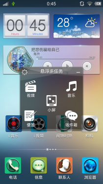 除此之外,悬浮多任务以及单手操作这些在Xplay手机上已经实现的功能都得以保留。长按返回键就可以快速的进入到悬浮多任务窗口界面,也可以自由设置小窗口显示的内容,这项功能类似于苹果的AssistiveTouch功能;而单手操作则在一只手掌握手机不方便的时候开启这项功能,从而出现一个小尺寸的界面,点击小界面可是实现和主界面一样的功能。尽管5英寸屏幕并不算过大,但是这项功能对于手小的用户或者在用户开车不适合单手操作的情况下都是非常实用的功能。