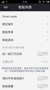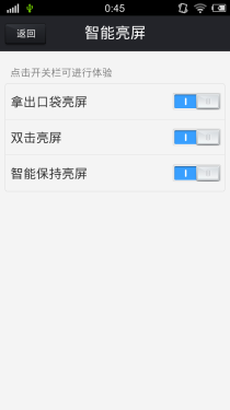 智能亮屏包括拿出口袋亮屏、双击亮屏和智能保持亮屏三项功能。前两个功能不需要额外解释,字面意思相信大家都能理解,也都是非常实用而且操作准确率很高的功能。只能智能保持亮屏是指用户长时间脸部对着屏幕时屏幕就会保持长亮状态,这项功能在用户看电子书以及视频的时候很有帮助。