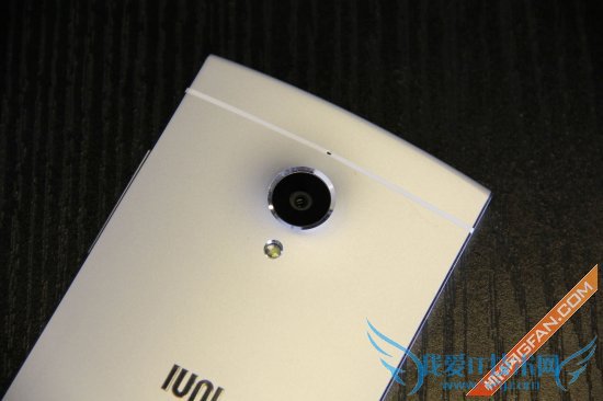 IUNI U2的机身背面,应该是整机外观元素上最为重要的一个部分。它整体采用了一块铝合金材质打造而成,并且进行了非常细致的抛光打磨,使手机背壳在触感上拥有了类肤的质感。可以说这样的设计,让大块的金属少了很多冰冷感,同时拥有了更多温润柔和的感觉。