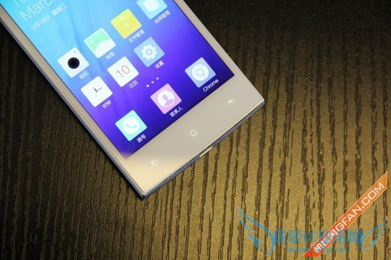 机身正面顶端是前置摄像头、听筒、以及感应器群。IUNI U2在机身元素的设计规范上,努力得追求着自己所能达到的对称。比如虽然前置摄像头的圆形轮廓,与感应器群的轮廓并不相同。但是在观感上看,它们二者的直径大致相同。这样将它们以听筒为中轴对称放置,设计美学的理念尽显其中。机身底部在不点亮屏幕和进行操作时空无一物,但当用户对手机进行具体操作时,三颗虚拟按键便会亮起,用户利用它们就可以非常方便的对手机进行控制。