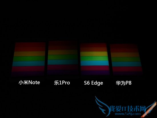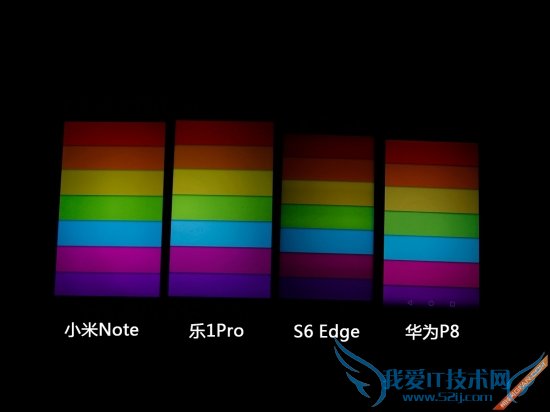 可视角度排名:小米Note>S6 Edge>华为P8>乐1Pro