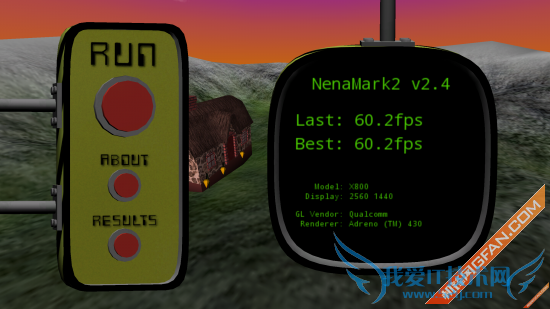 NenaMark2是一款面向Android智能手机的图形处理能力测试工具,通过一段视频Demo的播放测试手机图形处理单元的硬件加速能力。其中Nenamark1适用于所有运行Android 2.x版本系统的终端;Nenamark2则适用于装备PowerVR SGX 540及以上图形芯片的高端Android设备。