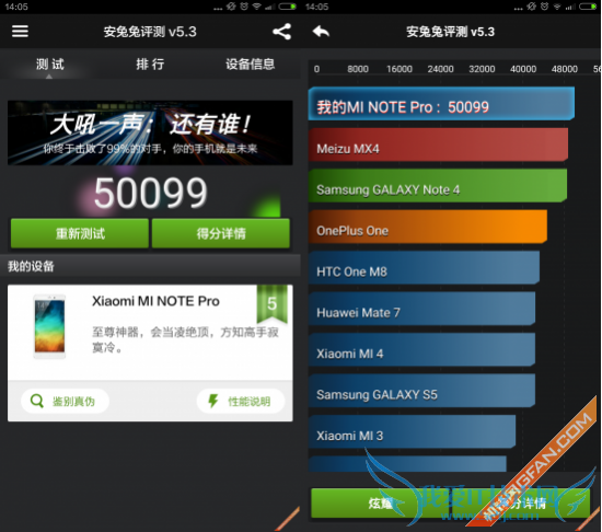 安兔兔评测排名:S6 Edge>乐1Pro>小米Note顶配版>华为P8