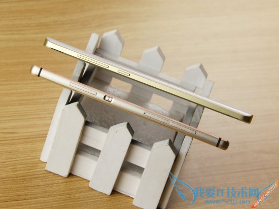 在机身尺寸放大之后,小米Note顶配版的电源键位置依旧十分合理,单手握持时很容易够到电源按键。同时采用了与中框同样材质的按键触感上十分优秀,按压时的反馈也十分到位。而华为P8在机身左侧没有任何卡槽和按键,光滑整洁。右侧布局也比较常规,分别为音量调节键、电源键、两个卡槽,可以同时插入两张Nano SIM卡槽或者同时插一张Nano SIM卡和一张Micro SD卡槽。