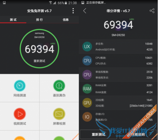 跑分软件选择时下最为主流的安兔兔评测以及NenaMark2,安兔兔评测是一个专门给Android系统的手机、平板电脑硬件跑分的软件,它能一键运行完整测试项目,通过内存性能、CPU整数性能,CPU浮点性能、2D、3D绘图性能、数据库I/O、SD卡读、写速度等多项性能测试,并对手机的整体和单项硬件性能做出评分。同时上传分数并查看该设备在世界的排名。