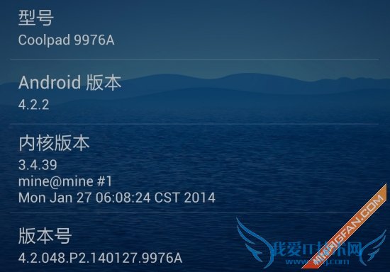 酷派大神 内置安卓4.2.2系统,版本号是:4.2.048.P2.140127.9976A