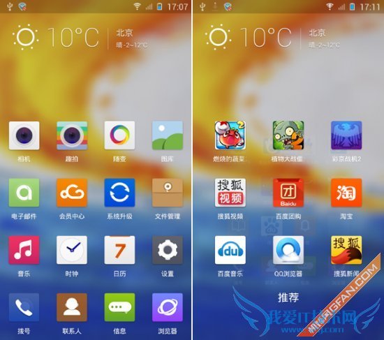 系统小结:Amigo 2.0作为Android系统的定制美化版,不仅在界面上进行了大幅度的美化,同时也加入了很多的细节上操作,这样促使ELIFE E7在使用上更加适合消费者。
