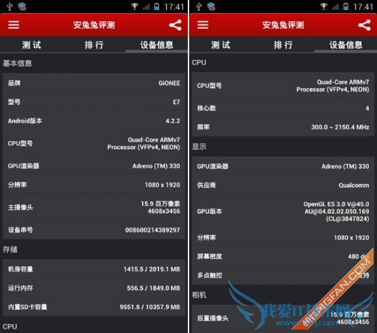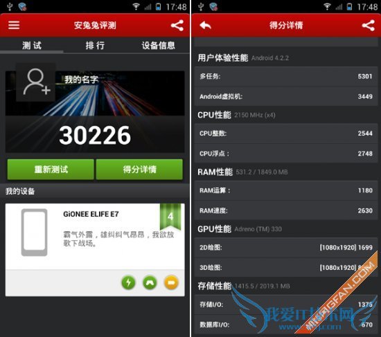 ELIFE E7(WCDMA版) 安兔兔得分:30226