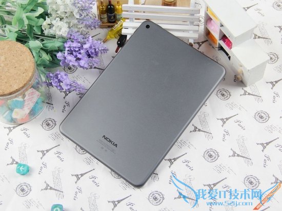 机身额头部位部为500万像素前置摄像头,摄像头左侧为感应器群。下巴部位诺基亚则是将三枚Android按键做到了屏幕内部,难免会给人留下一种故意挤占屏幕内部空间的感觉。其实将按键做成触控按键会更好,至少屏幕空间不会被挤占。在这一方面小米平板同样采用了4:3的比例,但触控按键位于机身下巴上,不会造成屏幕空间被挤占的情况。