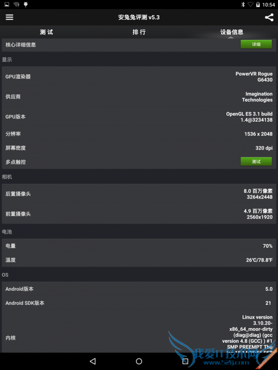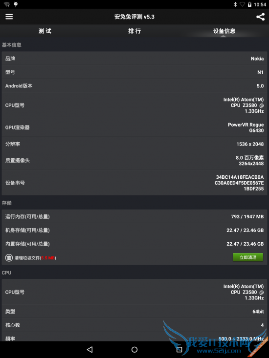 64位的处理器,这将能让它在最大程度上利用Android 5.0的64位兼容性。为了更好的将性能信息展现给大家,下面我们通过评测软件进一步了解诺基亚N1平板的性能情况。