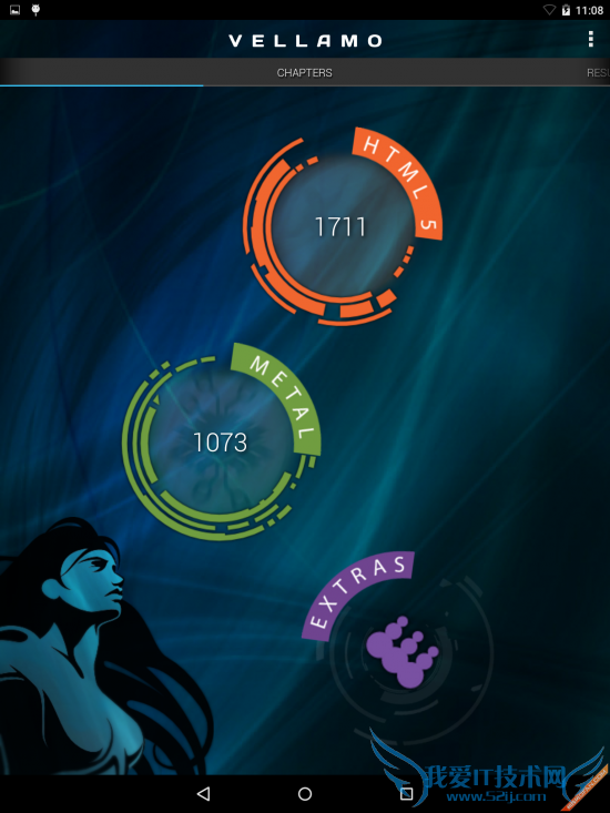 VELLAMO测试:是一款网页基准评测,该软件可以评估Android设备上的浏览器性能。Vellamo为浏览器的性能和稳定性提供了一个全面的评分,包括网络,脚本,渲染,和用户体验。结合行业标准和定制测试最后以分数形式来表现一款Android设备在网络浏览方面的能力。
