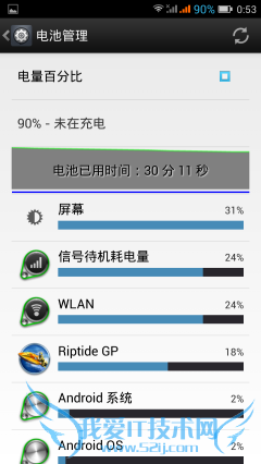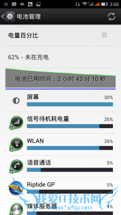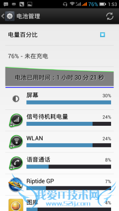 三星GALAXY Note II连续播放30分钟音乐耗电情况