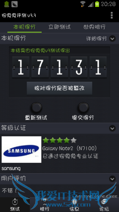 安兔兔跑分对比结果(左图为三星GALAXY Note II 右图为大可乐2代)