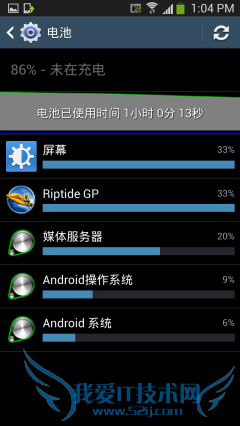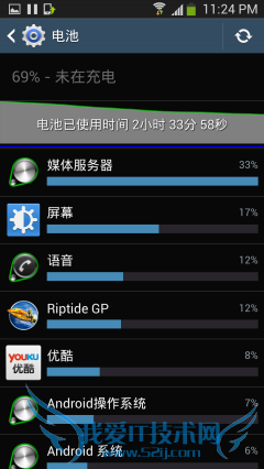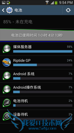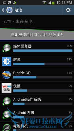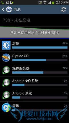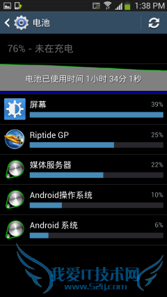 在游戏测试环节,没有选择极品飞车那类大型游戏,而是选择个人比较喜欢玩的激流快艇。搭载骁龙800 MSM8974处理器的三星GALAXY S4 LTE-A测试半小时后电量由94%降至85%,共消耗9%电量。搭载三星Exynos 5 Octa 5410处理器的S4测试半小时后电量由96%降至86%,共消耗10%电量。