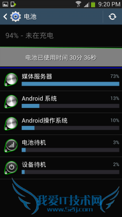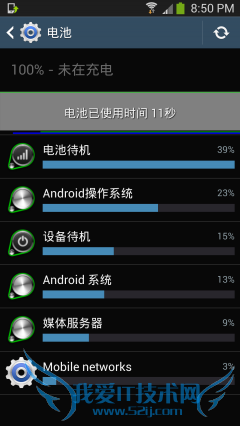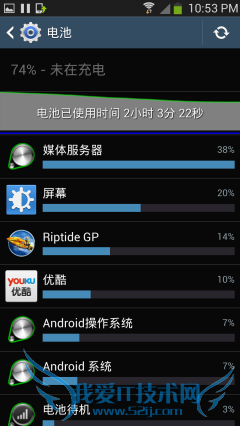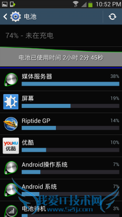 接下来我们继续测试本地音乐环节,每天上下班必须听音乐,所以这个环节必不可少。使用自带播放器播放音乐,搭载骁龙800 MSM8974处理器的三星GALAXY S4 LTE-A测试半小时后电量由77%降至74%,共消耗3%电量。搭载三星Exynos 5 Octa 5410处理器的S4测试半小时后电量由76%降至74%,共消耗2%电量。