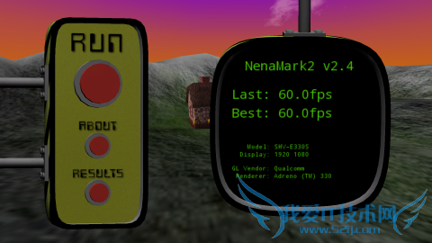 NenaMark2是一款用于Android设备的硬件加速基准测试程序,通过演示一款实时渲染的画面来对手机的图形能力进行测试,包括反射、 动态阴影、曲面参数、复杂光线模式等内容,需要Android 2.0以上系统和OpenGL ES 2.0支持。搭载骁龙800 MSM8974的三星GALAXY S4 LTE-A得分为60.0fps,这个成绩非常出色,显然它运行大型游戏会非常完美。而搭载三星 Exynos 5 Octa 5410处理器的三星S4最终得分也高达59.9fps。