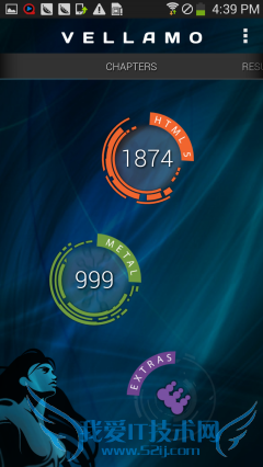 Vellamo是一个基准测试应用,它可以让你对手机浏览器的性能及稳定性进行测试,包括像Java脚本性能、渲染、联网和用户界面等。该工具 的结果同样包括多个子项,但我们只取总成绩,分数越高则表明手机对浏览器的优化程度越高,网页浏览体验更好。搭载骁龙800 MSM8974的三星GALAXY S4 LTE-A HTML5得分1874,Metal得分999,而搭载三星 Exynos 5 Octa 5410处理器的三星S4 HTML5得分2012,Metal得分972,能力相仿。