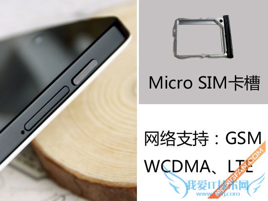 机身顶部是3.5毫米耳机孔,机身底部是Micro USB数据接口、独立扬声器、麦克风,机身左侧是音量调节按键,机身右侧是电源键和Micro SIM卡槽。