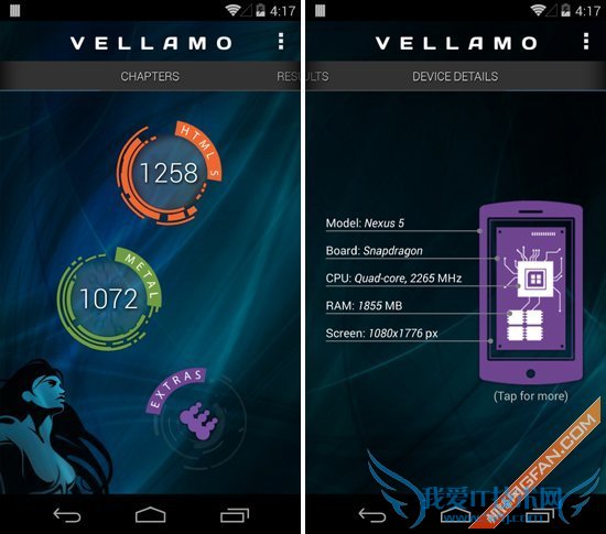LG Nexus 5 ELLAMO测试成绩:HTML 1258、METAL 1072