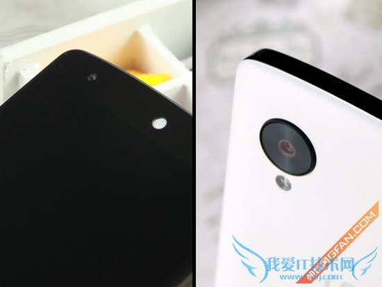 配色方面,本次笔者收到的评测机是前黑后白的外观,除了这样的配色版本外,Nexus 5还为消费者提供了一种前后全黑的机身颜色外观。