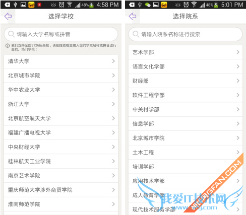 然而进入超级课程表我们并没有看到下拉式的学校列表,用户只能通过手动输入进行查询,这一点课程格子要优于超级课程表。
