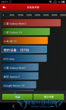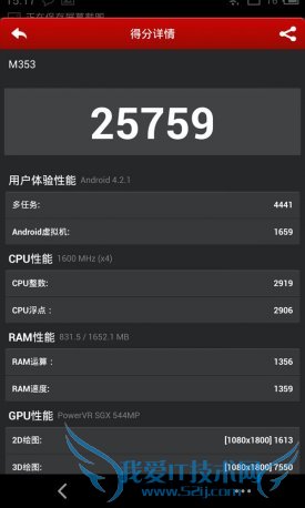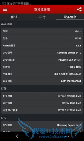 通过几款常见性能检测软件的测试,我们可以看到白色版魅族MX3的跑分成绩与之前的黑色版魅族MX3基本一致,可见硬件配置没有进行改变。
