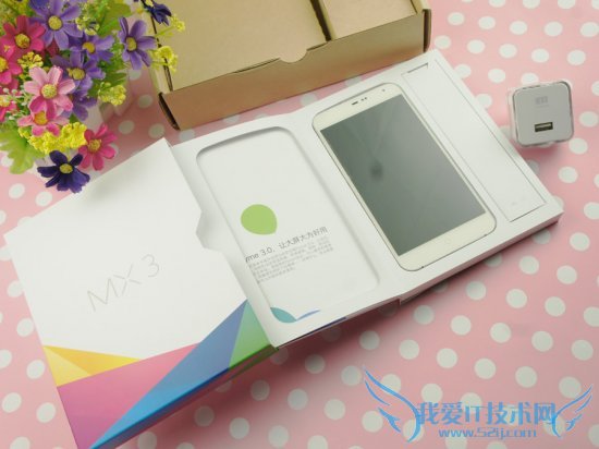 打开外包装盒,期盼已久的白色版魅族MX3手机包装静静的躺在一侧,同样白色的电源插头被安稳的卡在包装盒右上角,确保不会因为运输过程而掉落下来。