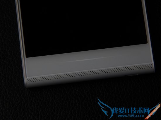 正面下方下巴部位与额头部位设计相同,将第二组扬声器与麦克风进行了集合,并通过与额头部分相同的网状设计来造成一种首尾呼应的感觉,同时需要值得一提的是,机身正面额头与下巴部分的网点开口加工的十分平整。