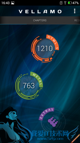 Vellamo是由Qualcomm(高通公司)开发的一个基准测试应用(类似于Neocore),它可以让你对手机浏览器的性能及稳定性进行测试,包括像Java脚本性能、渲染、联网和用户界面等。该工具的结果同样包括多个子项,但我们只取总成绩,分数越高则表明手机对浏览器的优化程度越高,网页浏览体验更好。