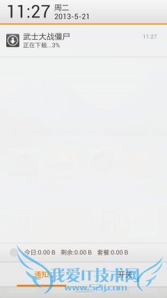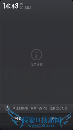 MIUI V5的通知栏变为了黑橙搭配,边缘加入圆角元素。