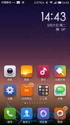 MIUI V5的桌面图标采用圆角设计,相比MIUI 4.1美观了不少。底栏图标也加入了程序名显示。有些图标进行了从新设计,比如图库、浏览器灯,老的MIUI用户还需要一段适应时间。