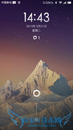 MIUI V5的解锁界面相比MIUI 4.1更为简洁,中间锁型的图标采用中空设计,比例更协调,整体显示效果好。由于MIUI V5依旧基于Android 4.1,而不是Android 4.2,所以解锁界面仍不具备小插件功能。
