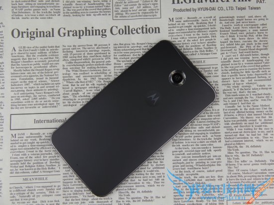 相比Nexus 6来讲,Moto X Pro背部没有了Nexus这几个字母显得更为简洁,由于小编之前有接触过Nexus 6,所以今天小编察觉到,Moto X Pro的背盖材质似乎有了些许改变,背盖的手感更加接近类肤质,并经过了某些特殊处理,即使手上有很多汗,也不会在背部留下指纹,这么好的一个改变,不知道官网为什么没有进行宣传。