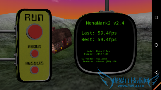 NenaMark2是一款面向Android智能手机的图形处理能力测试工具,通过一段视频Demo的播放测试手机图形处理单元的硬件加速能力。