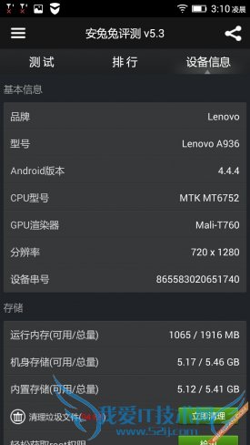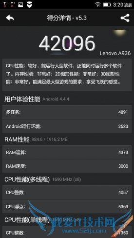 目前实测该机安兔兔跑分成绩已超过4万分,这个分数在目前千元机中也算高端产品了,甚至这样的分数可媲美现有的骁龙801处理器 。得益于内置八个物理核心、Cortex-A53的架构和28nm HPM工艺,CPU在实际有着很不错的表现,发热降频严重的情况很少见,这对于主打千元的手机来说相当难得。